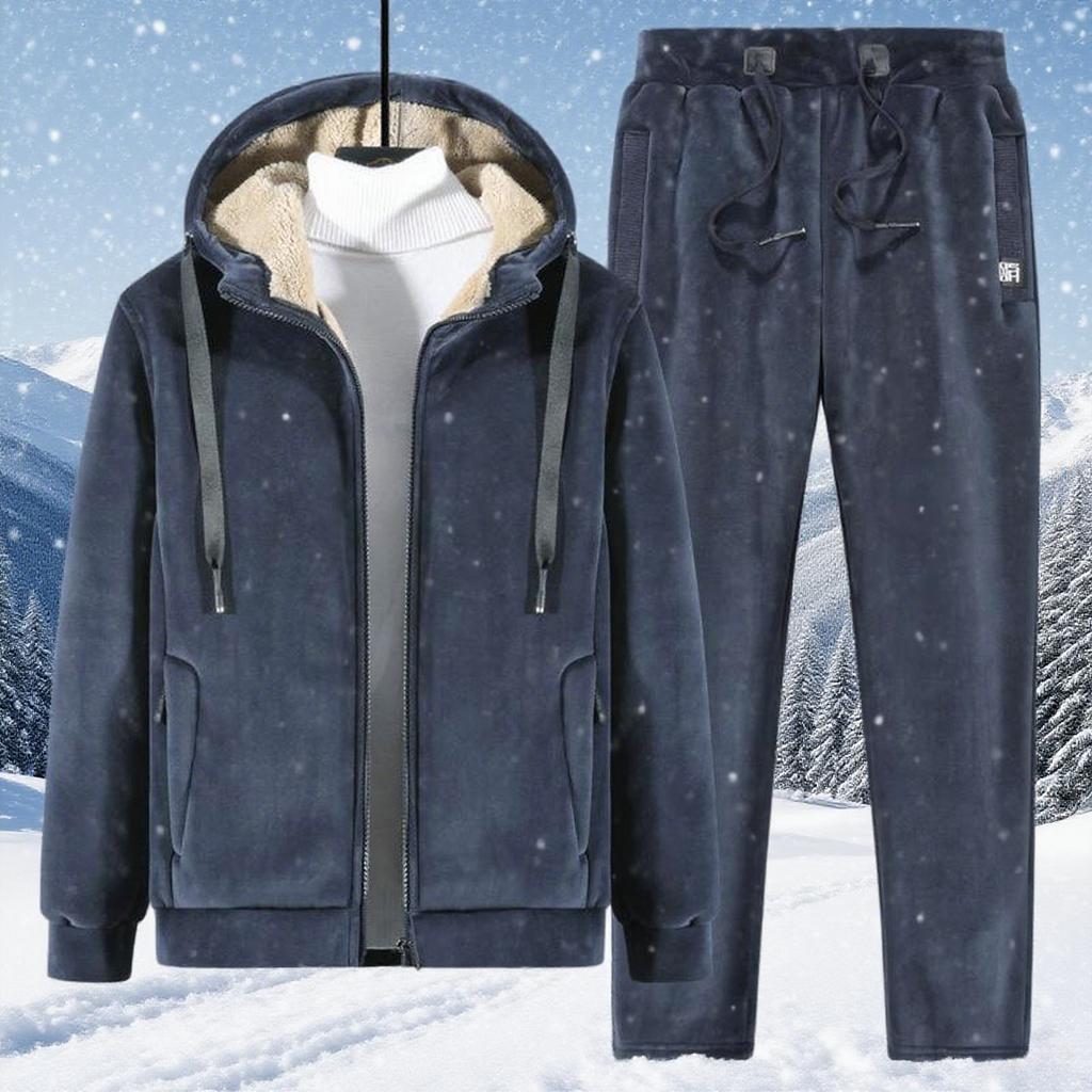 Мужской зимний комплект из флиса «Серебристая лиса»: Худи на флисовой подкладке и подходящий костюм, модная повседневная одежда