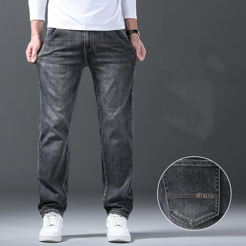 Джинсы высокого класса Мужские Весенне-осенние Прямые Свободные Стрейч Молодежные и Среднего возраста Всесезонные Длинные Брюки Мужские Весенне-осенние Модели