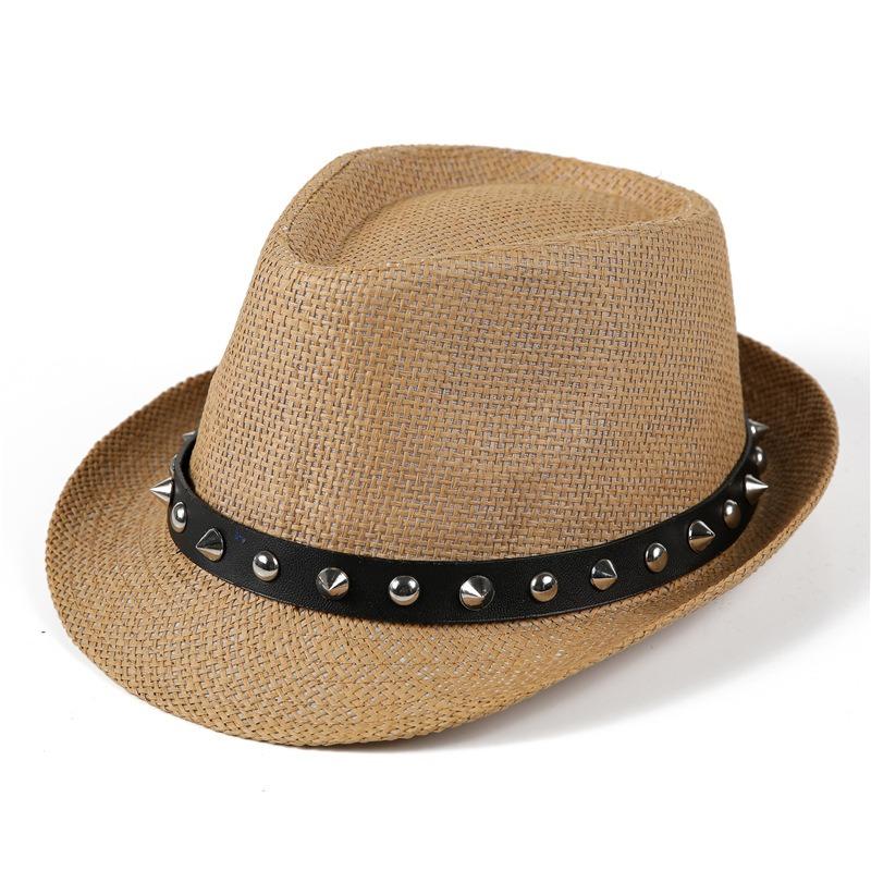 Шляпа Женская Летняя Мода Британская Цилиндр Дышащая Солнцезащитная Шляпа Заклепка Джазовая Шляпа Мужской Тренд Соломенный Цилиндр — купить товар онлайн с бесплатной доставкой по всему миру!