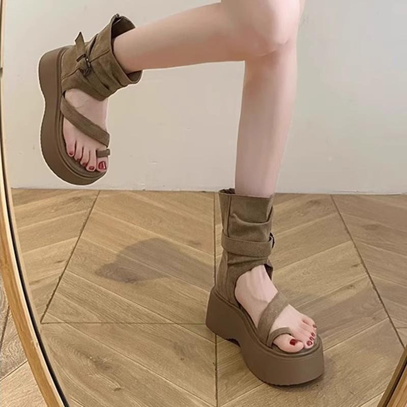 Vintage platform Roman cool boots women's 2025 summer new fashion set toe high-top sandals heightened zipper