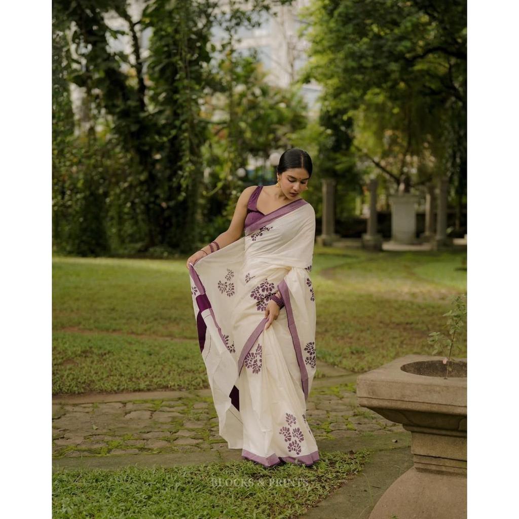 2)Ткань сари : Лен с серебряной каймой джари