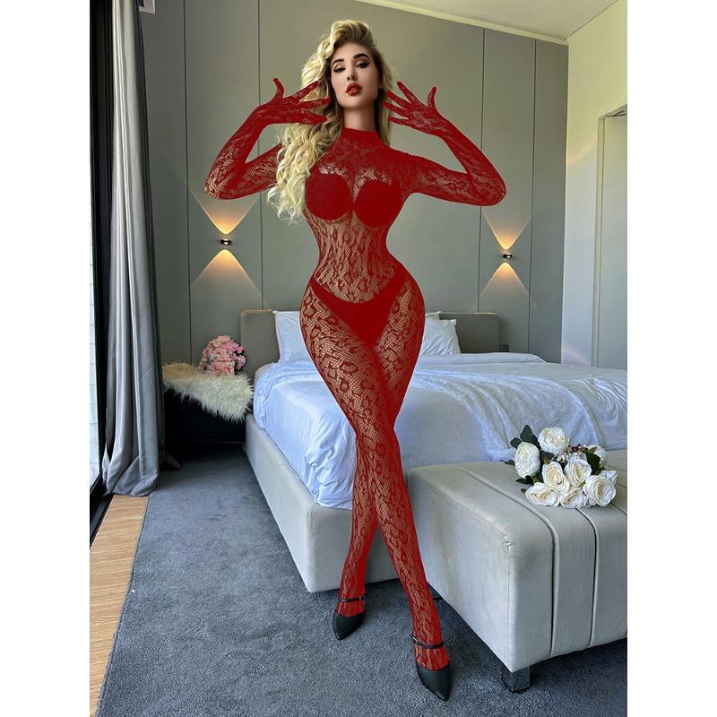 Сексуальное нижнее белье Сексуальный цельный сетчатый комбинезон с длинными рукавами Сетчатые носки Сетчатая закрытая ластовица Перспектива