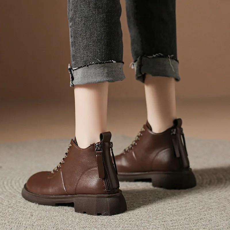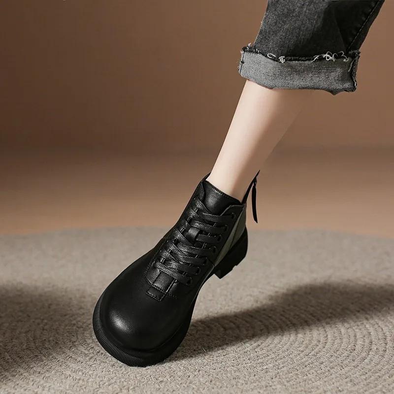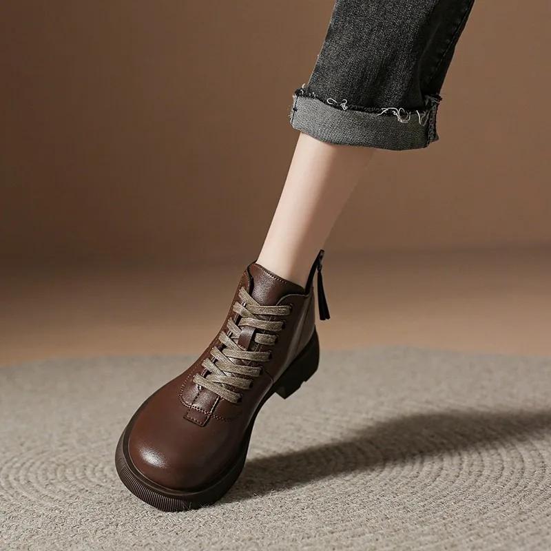Осень 2024 года, женские сапоги ручной работы длиной до щиколотки из натуральной коровьей кожи для женщин