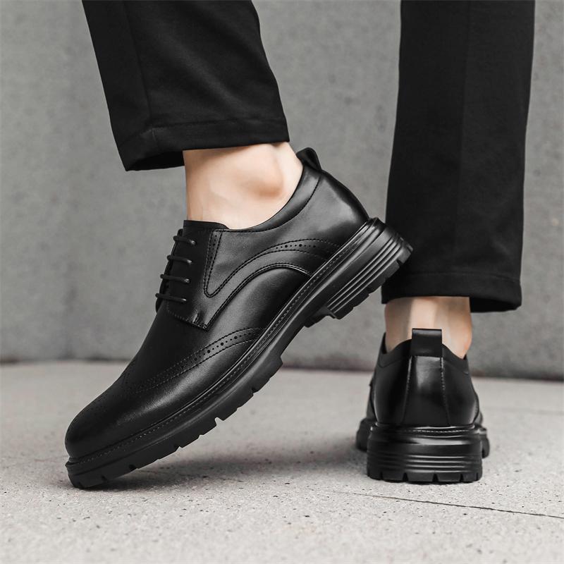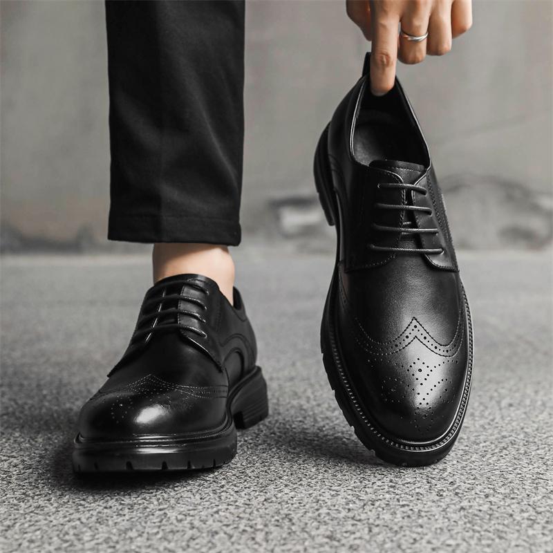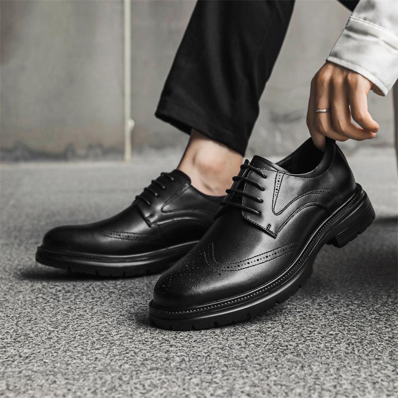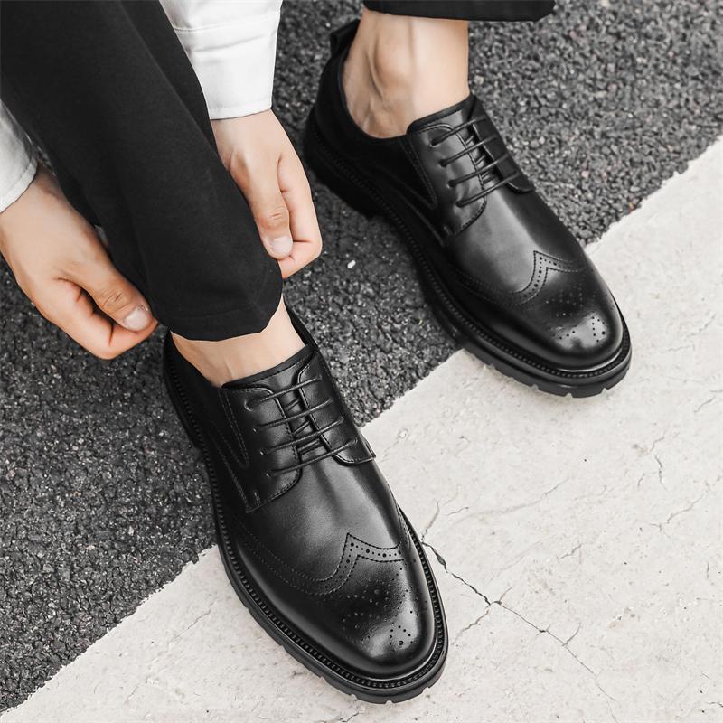 Мужские модные кожаные туфли-броги на шнуровке, повседневная обувь на весну и осень, с круглым носком, на платформе и среднем каблуке, водонепроницаемые мокасины