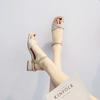 Сказочный стиль квадратная голова контрастного цвета открытый носок сандалии летние толстый каблук мода одно слово пряжка римский высокий каблук женщины