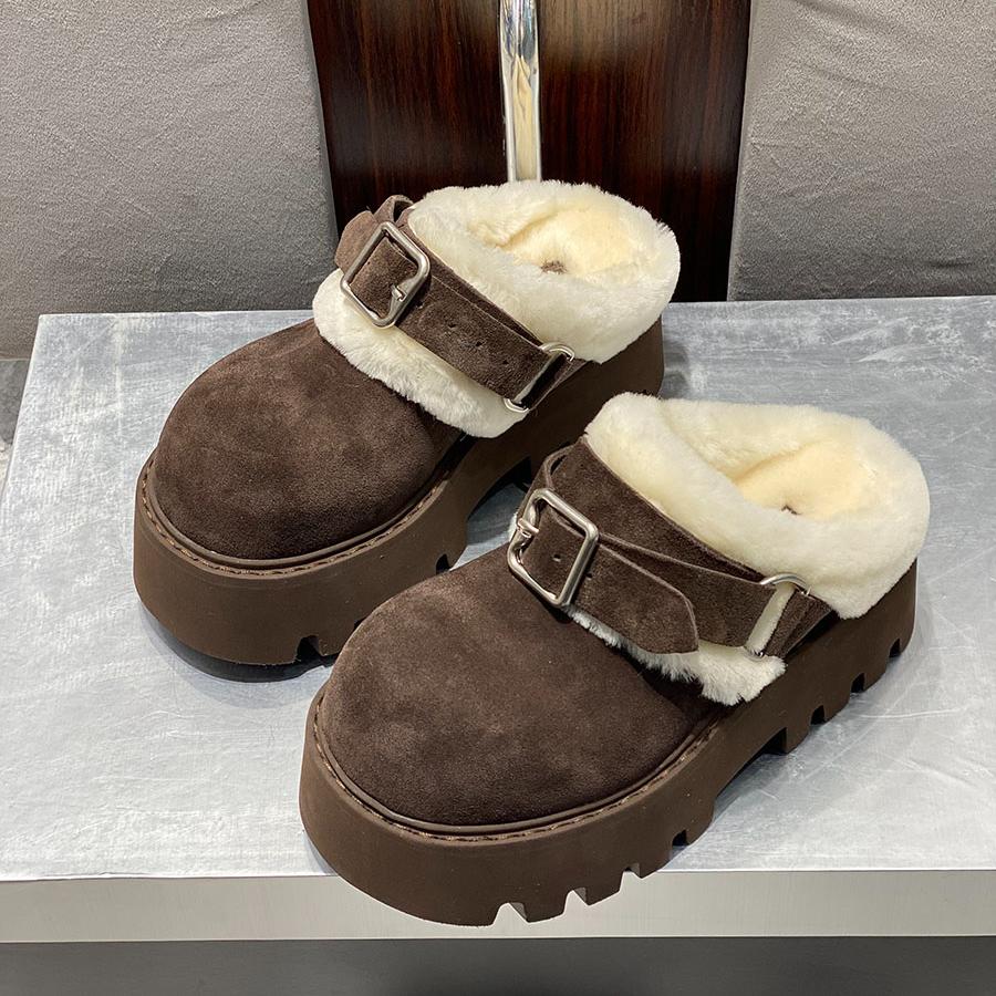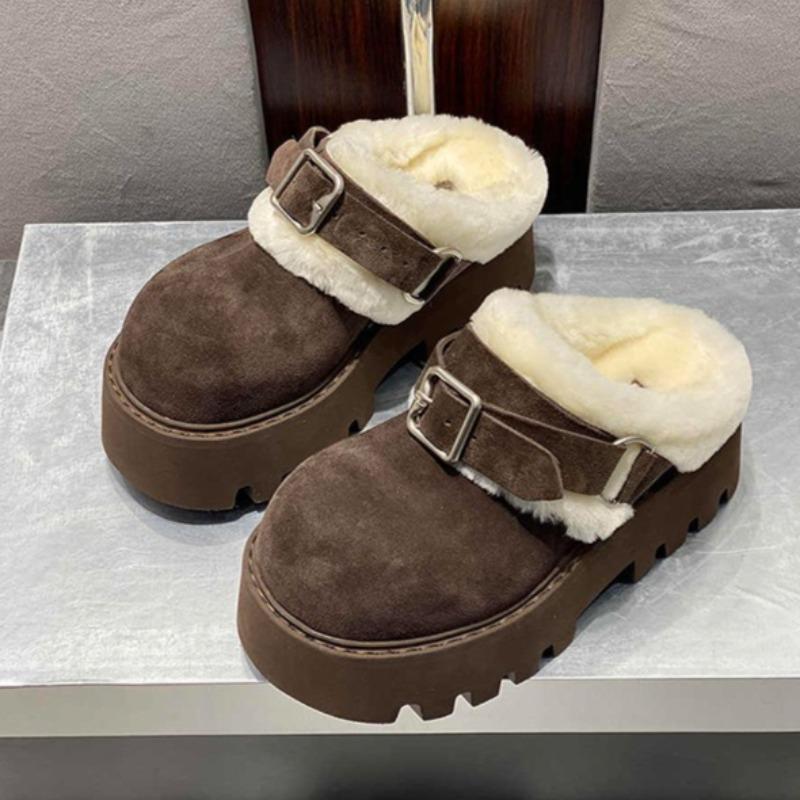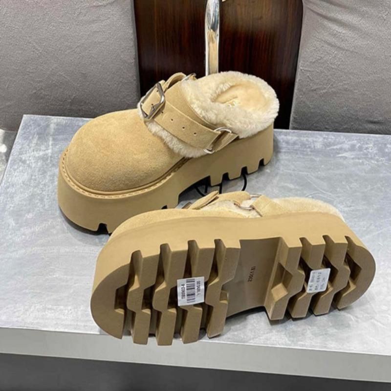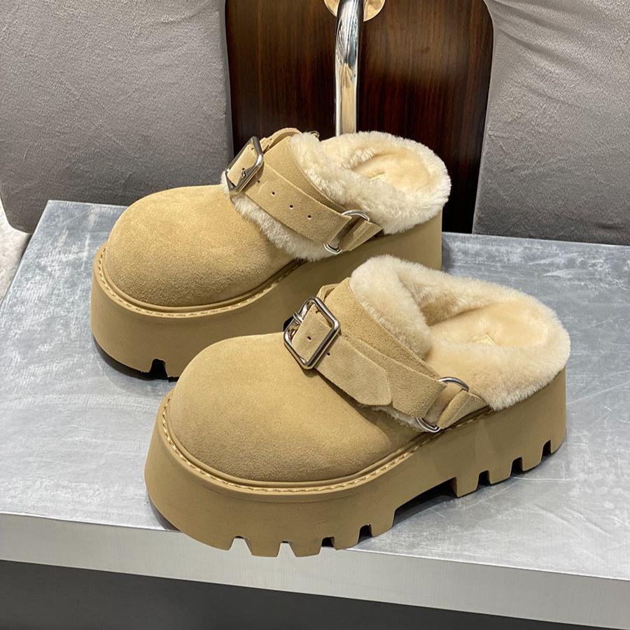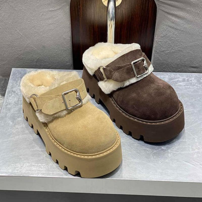 Меховые женские хлопковые тапочки на платформе, плоские туфли, мюли, зимние теплые шлепанцы с открытой пяткой, женские модные модные туфли 2025 года, удобные женские зимние ботинки