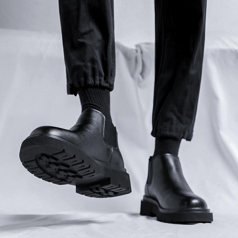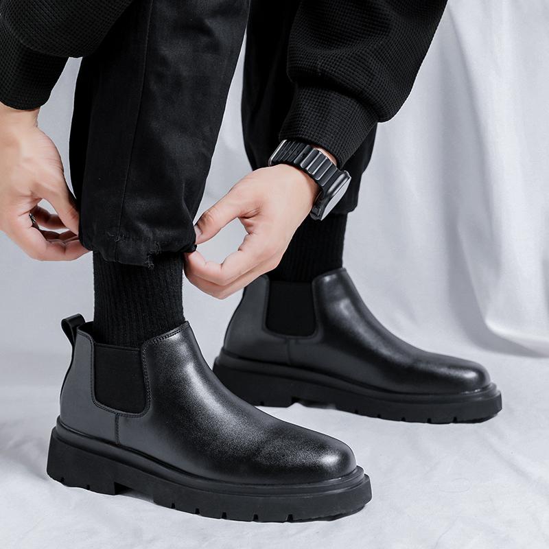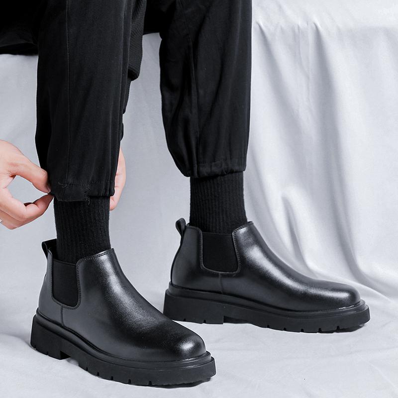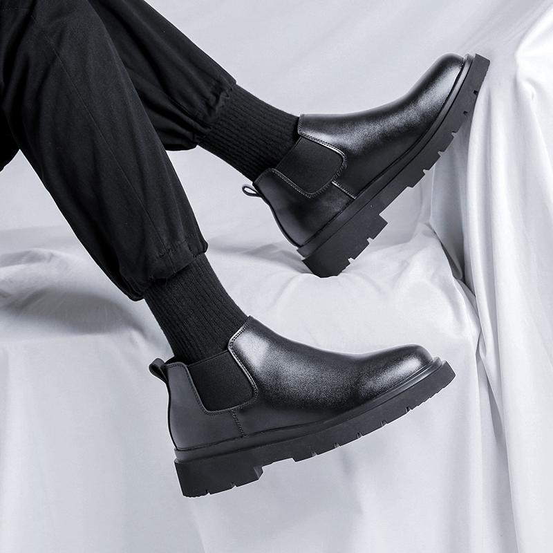 Эластичные ботинки на платформе для мужчин с круглым носком, удобные, модные, износостойкие, мягкие, повседневные, нескользящие, весна-осень