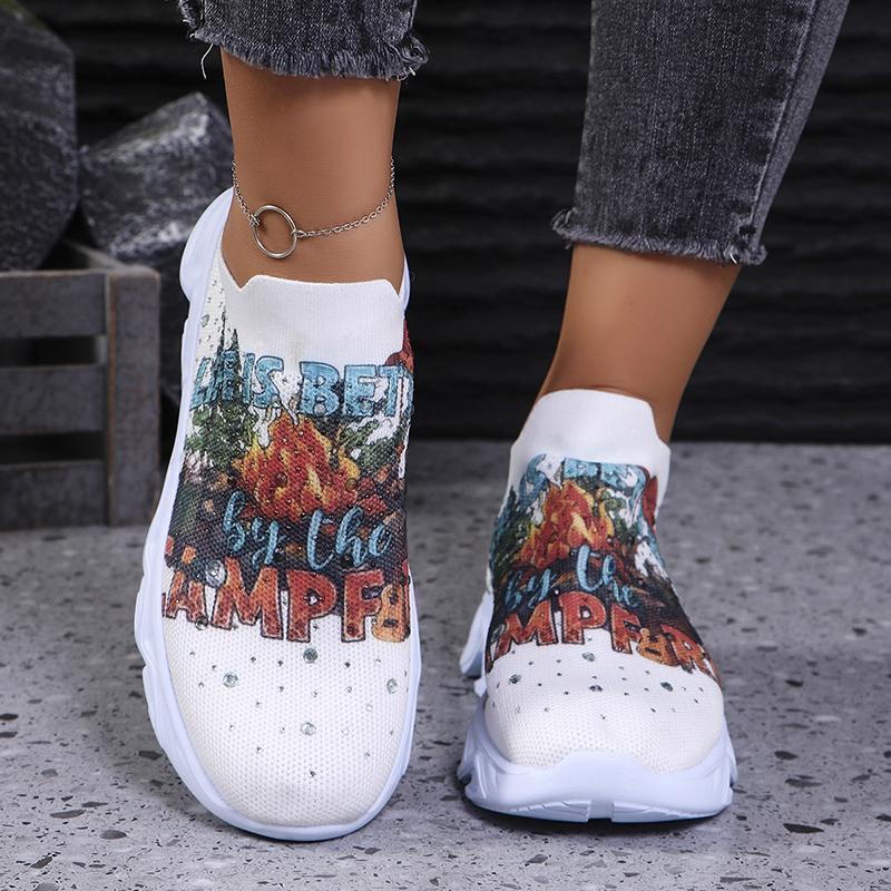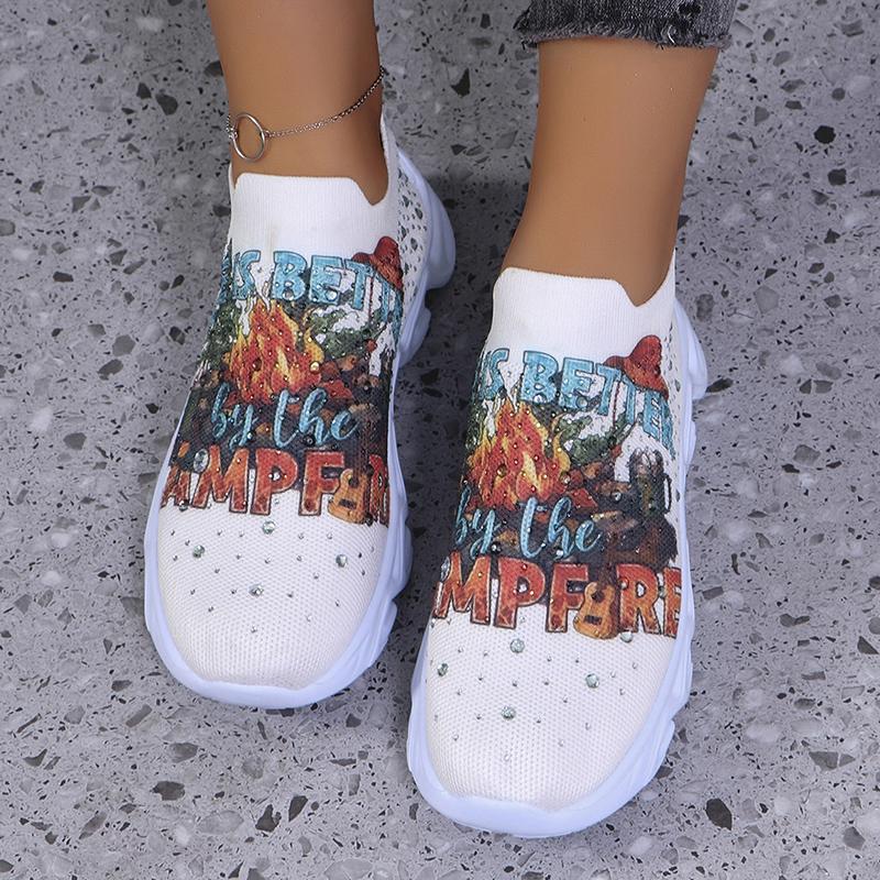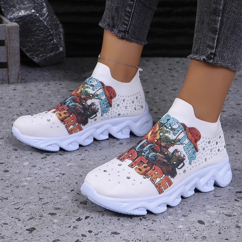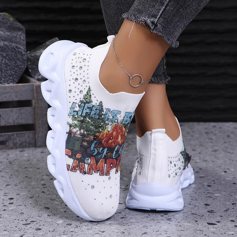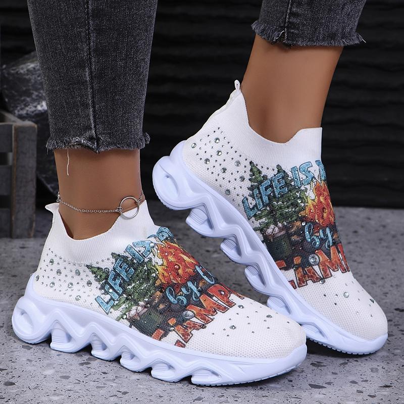 Модные кроссовки на платформе с принтом, женские, легкие, большого размера, со стразами, на плоской подошве, женские, удобные, дышащие, сетчатые, для ходьбы