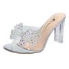 Летние новые босоножки Wind, прозрачные, сексуальные, с кристаллами, на высоком каблуке, верхняя одежда, сетчатая, красная, на толстом каблуке, удобная женская обувь