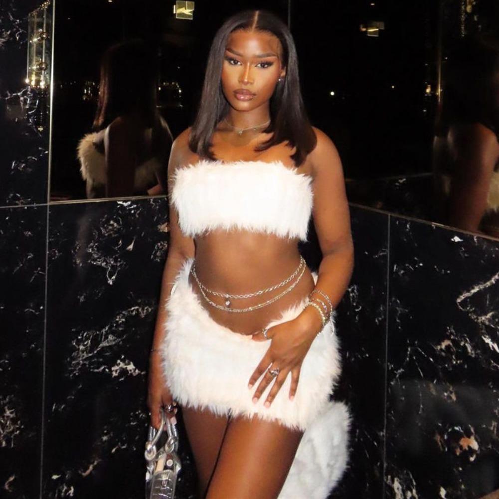 Европейский и американский сексуальный стиль горячей девушки Топ-труба без рукавов Женский летний плюшевый с высокой талией Прилегающая юбка Верхняя одежда Рождественское боевое платье