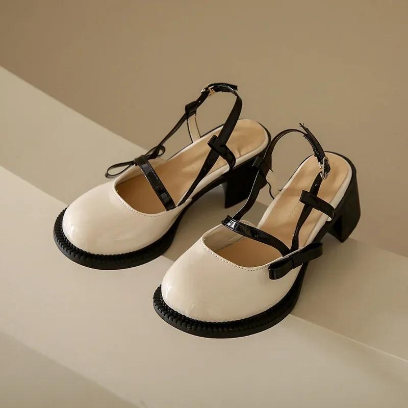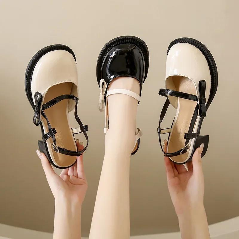 Французские туфли на толстом каблуке для женщин 2024 года, весна-лето, новая мода, повседневные туфли Мэри Джейн, женские дизайнерские кожаные сандалии для женщин