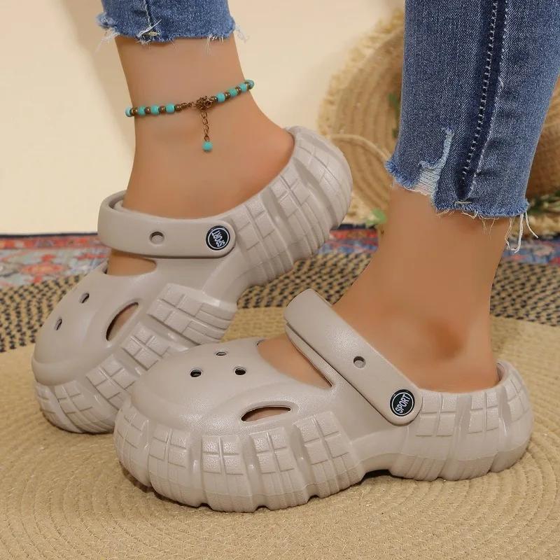 Женские сандалии 2024 года, новые модные однотонные универсальные летние легкие нескользящие пляжные туфли с мягким дном и отверстиями для сада — купить товар онлайн с бесплатной доставкой по всему миру!