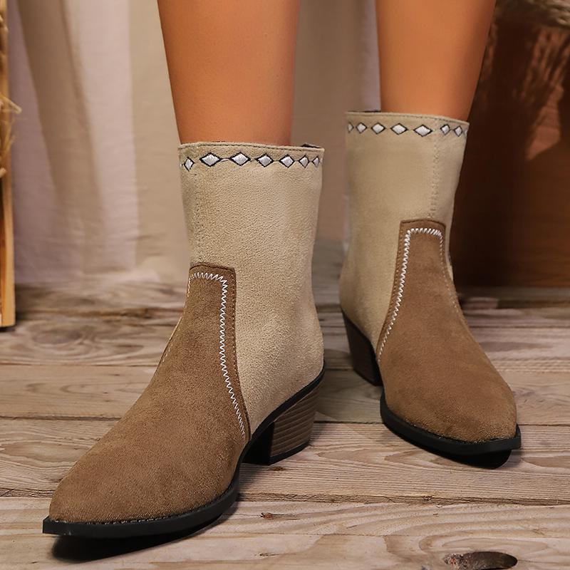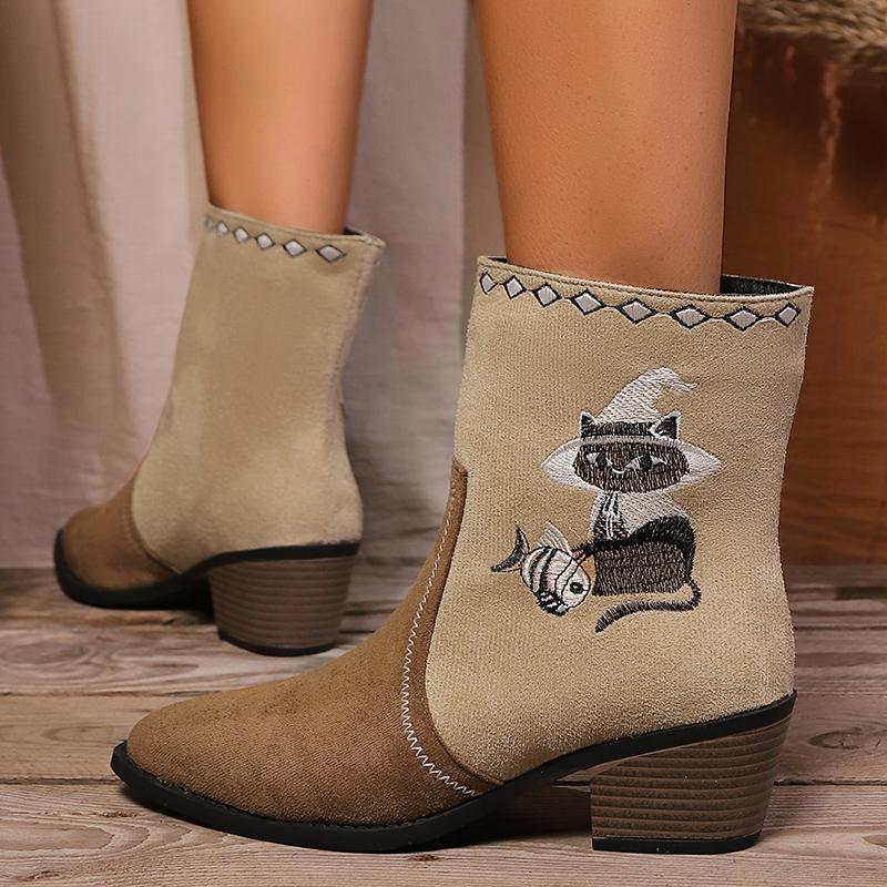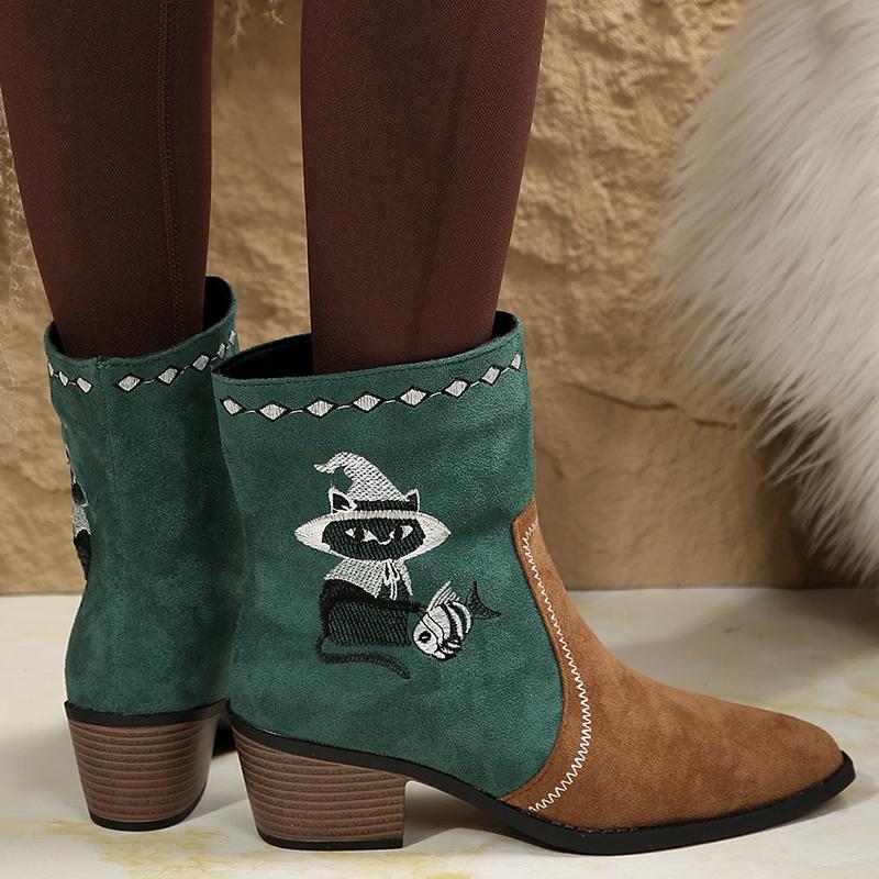 Вышитые ковбойские сапоги в стиле вестерн, женские осенние ботильоны с острым носком и толстым каблуком, женские разноцветные ботильоны для девушек-ковбоев