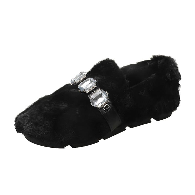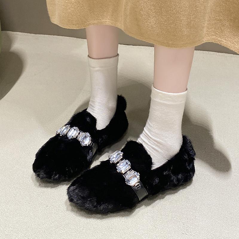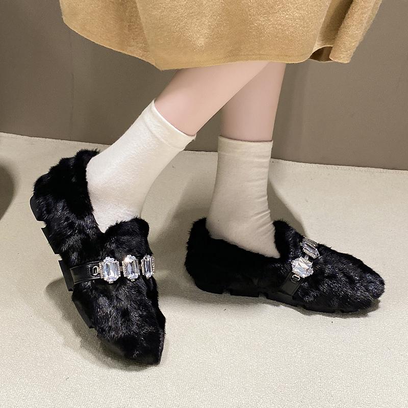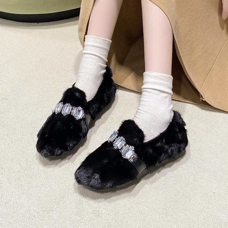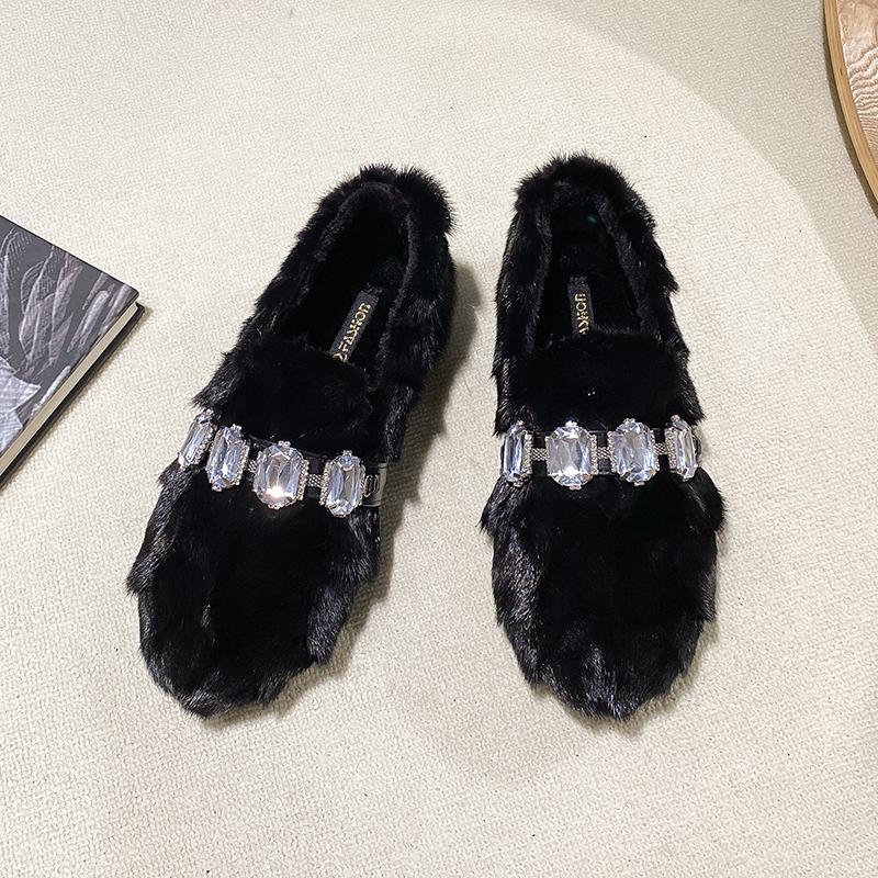2024 Модная женская обувь, женские туфли на плоской подошве, горячая распродажа, повседневные туфли на плоской подошве с кристаллами, женские новые короткие плюшевые туфли больших размеров на плоской подошве с низким каблуком