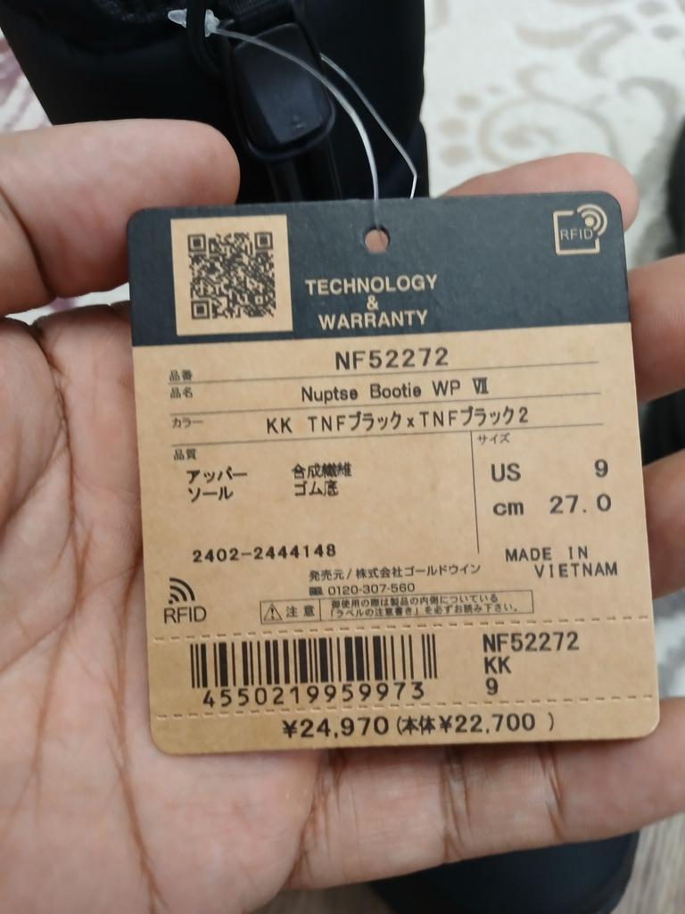 наименование товара: THE NORTH FACE Nuptse Bootie Waterproof VII NF52272 TNF Black/TNF Black 2, 27.0 см (Унисекс Водонепроницаемые Утепленные Зимние Ботинки)