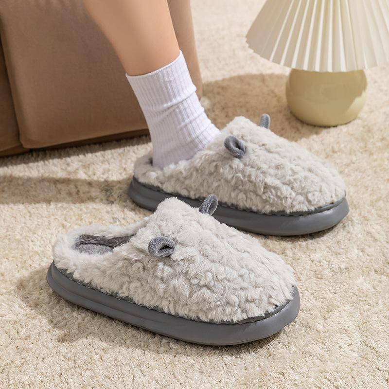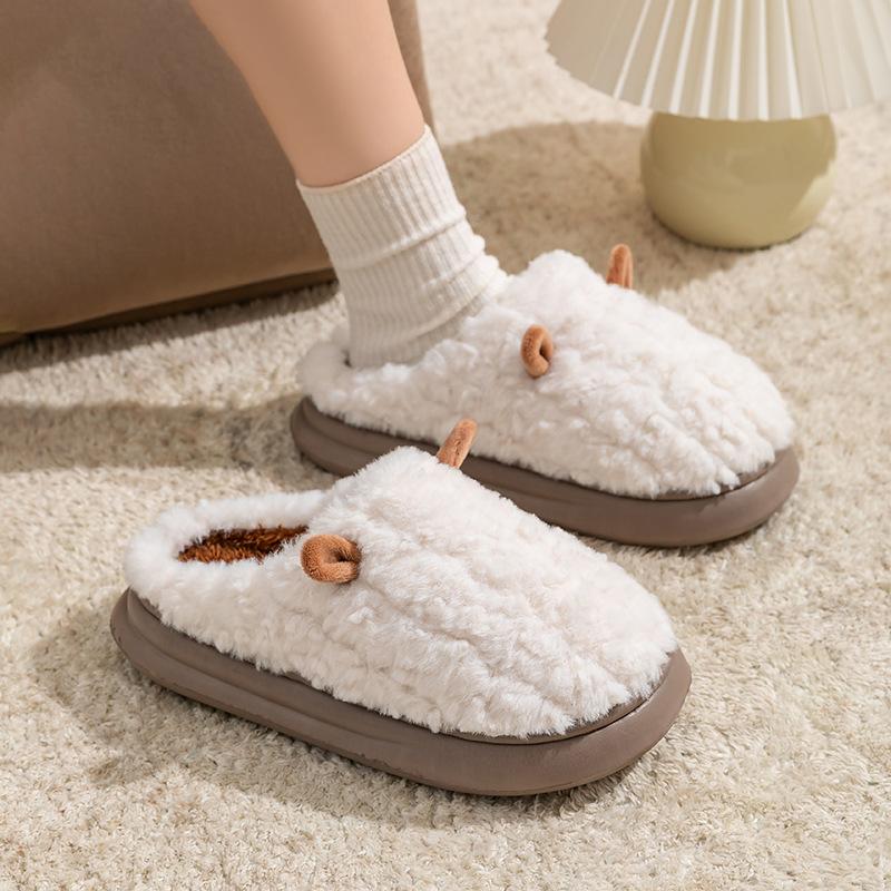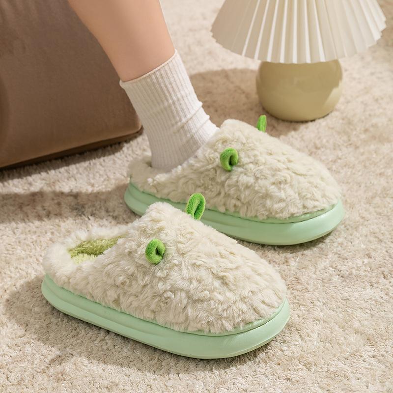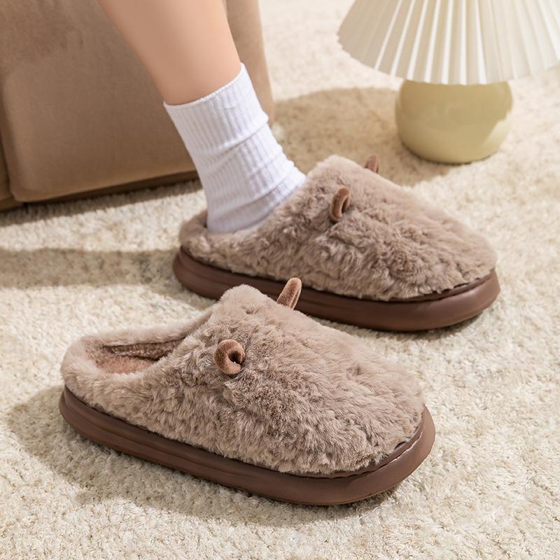 Милые хлопковые тапочки-круассаны женские осенне-зимние домашние нескользящие плюшевые хлопковые туфли для послеродового периода на толстой подошве
