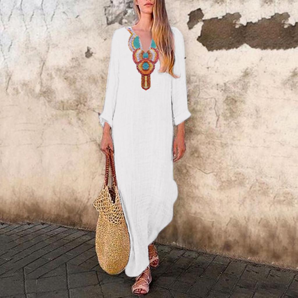 Женское платье макси с длинными рукавами и v-образным вырезом с принтом, мешковатый кафтан с разрезом по краю, длинное платье — купить товар онлайн с бесплатной доставкой по всему миру!