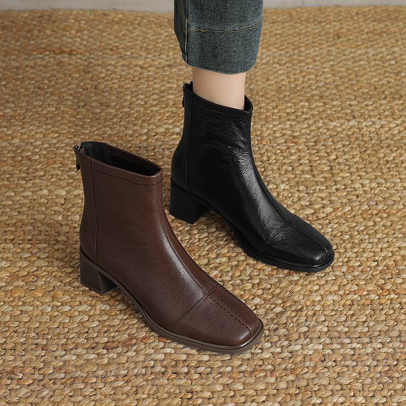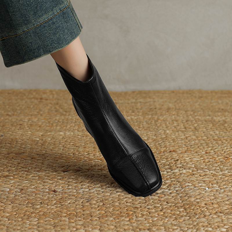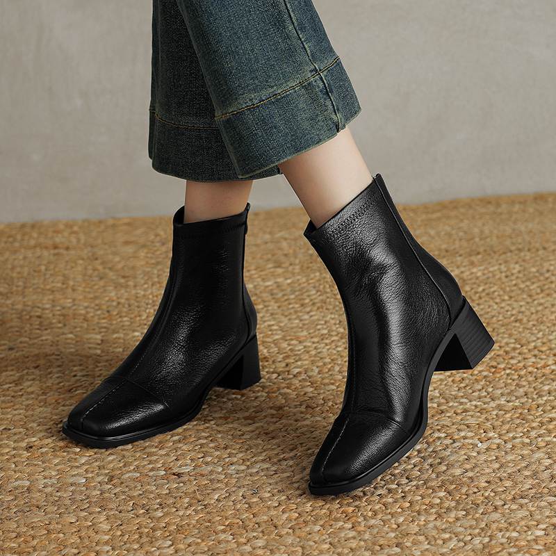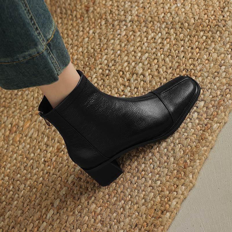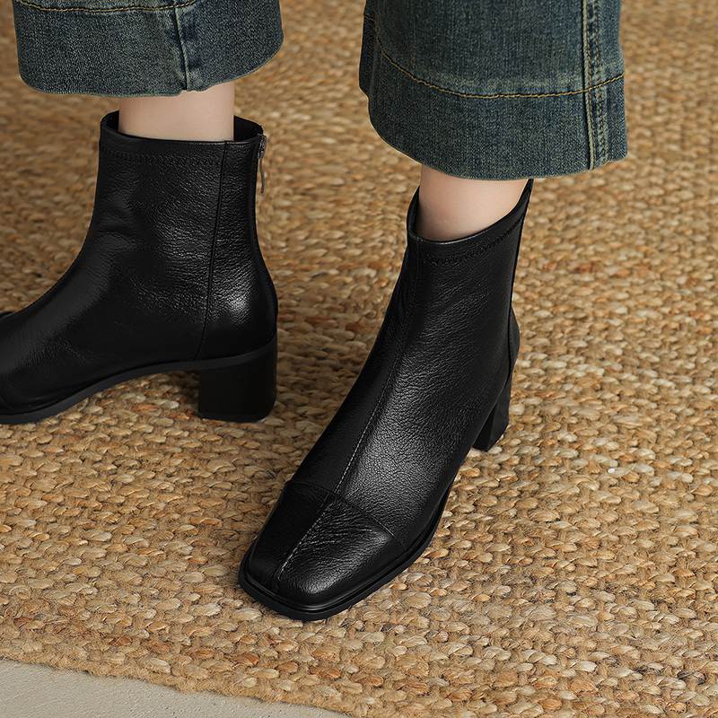 Krazing Pot Обувь из овчины на осень-зиму, толстый каблук, размер 42, квадратный носок, винтажные ботильоны на молнии