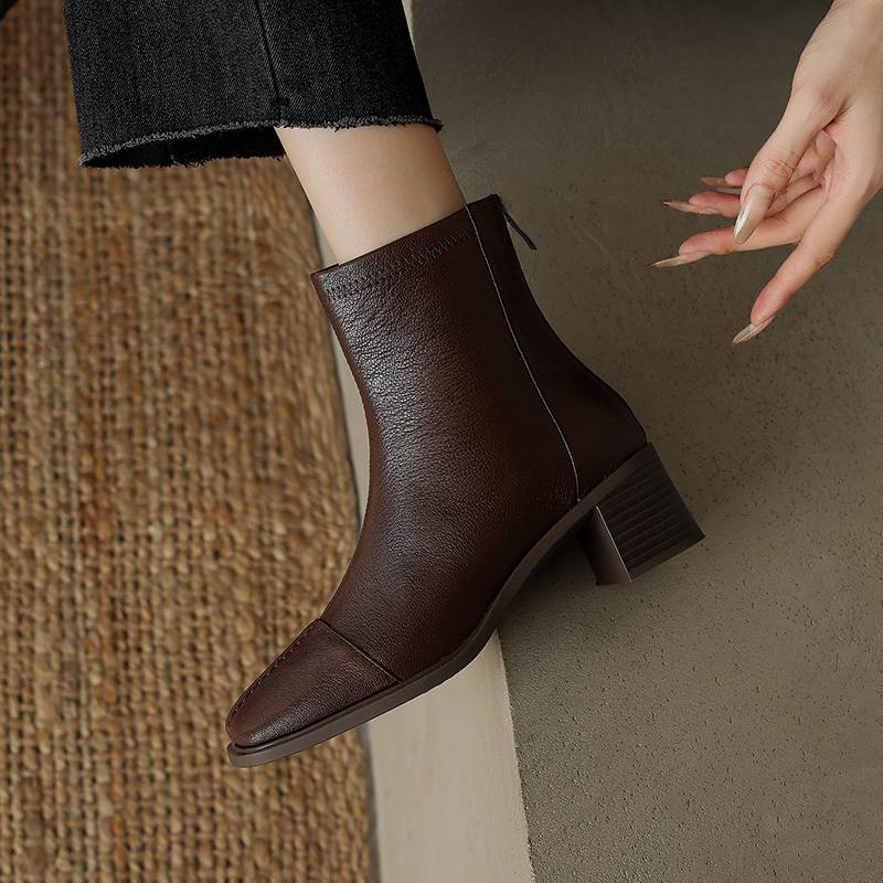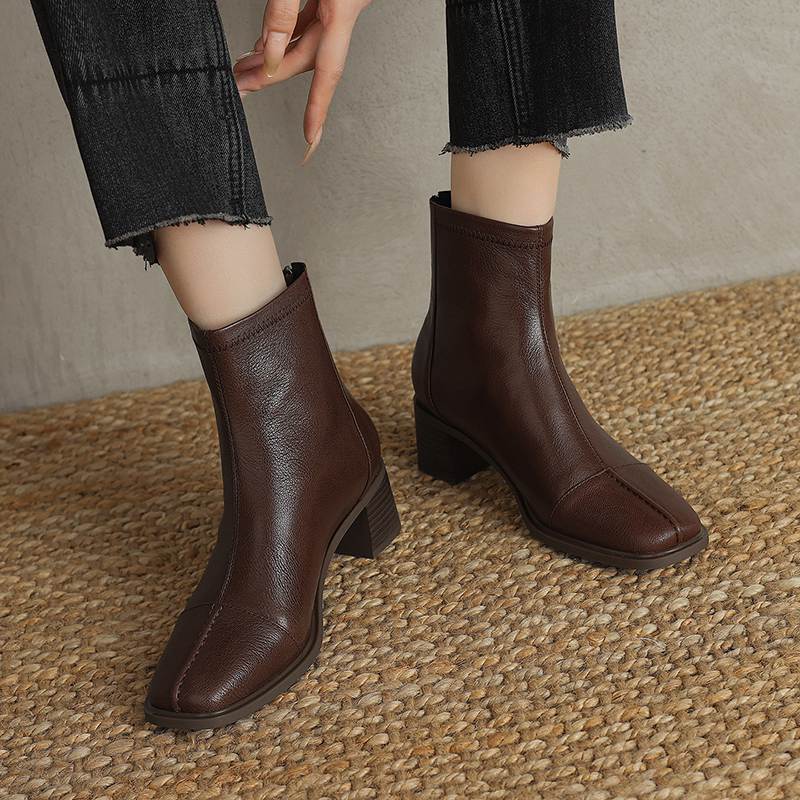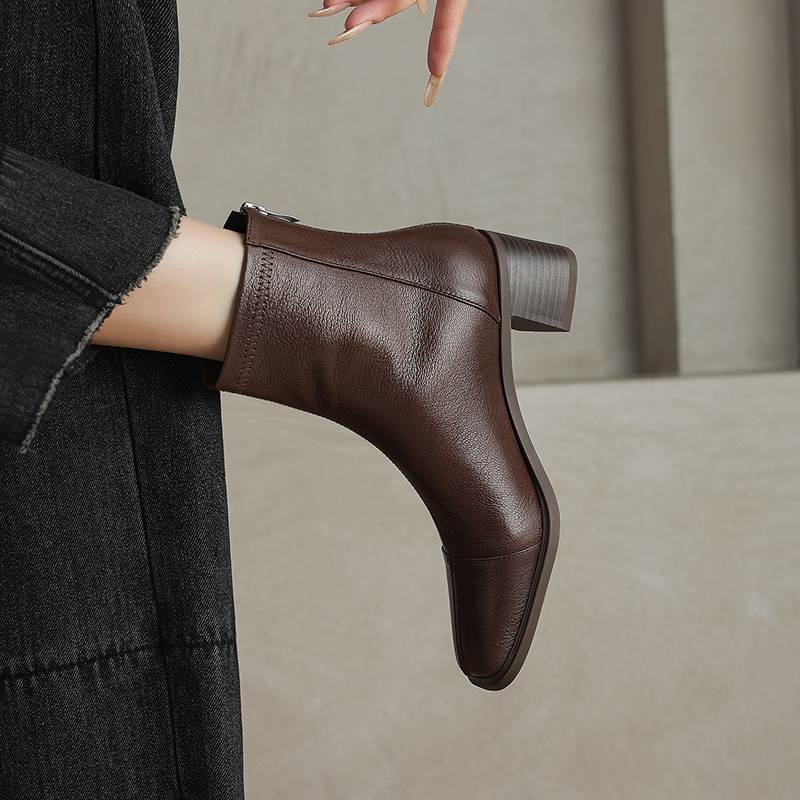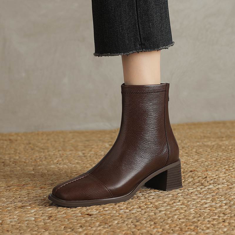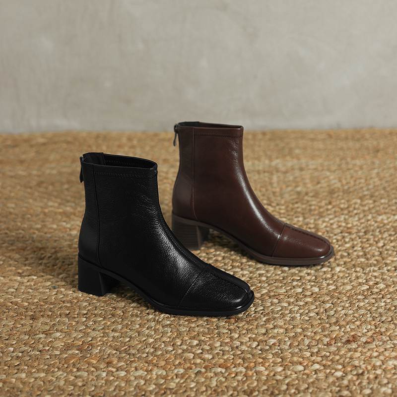 Krazing Pot Обувь из овчины на осень-зиму, толстый каблук, размер 42, квадратный носок, винтажные ботильоны на молнии