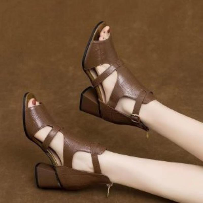 Босоножки с открытым носком на высоком каблуке, Новые ботинки с толстым каблуком и вырезами, Короткие ботинки и Туфли на среднем каблуке