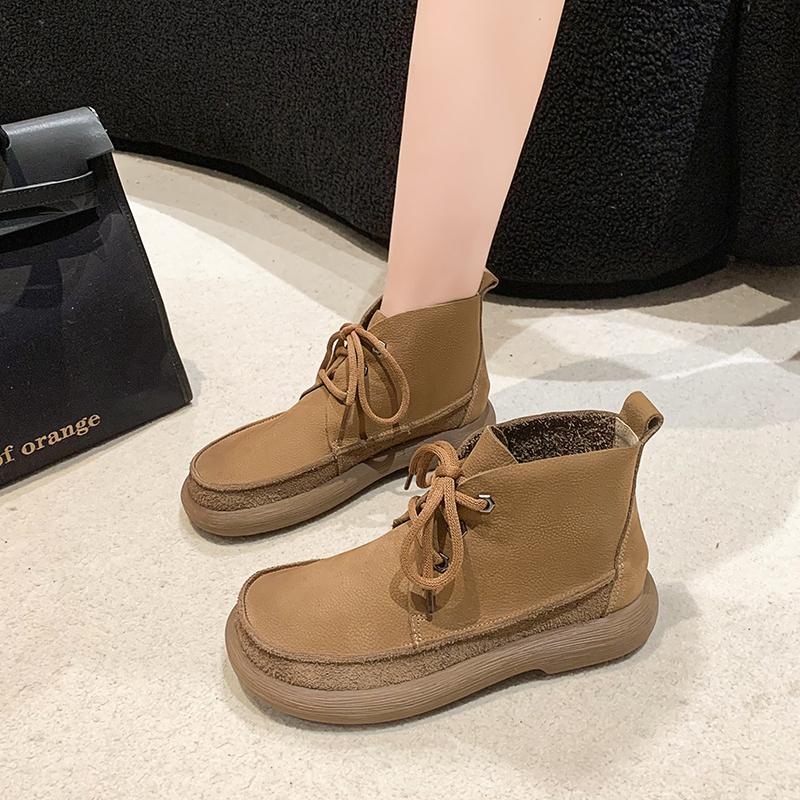 2024 Высококачественная женская обувь со шнуровкой спереди, женские ботинки, модные круглые носки, современные ботинки для женщин, новые большие размеры, однотонные ботильоны