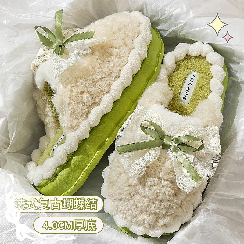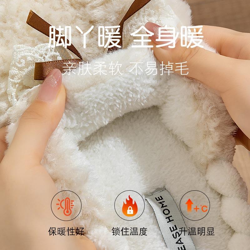 Bow slippers women's new autumn and winter wear fashion thick bottom warm velvet thickened cotton mop