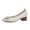 2024 Женские элегантные бежевые туфли с квадратным носком на каблуке, женские металлические аксессуары, удобные милые туфли