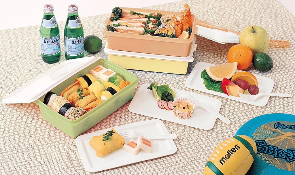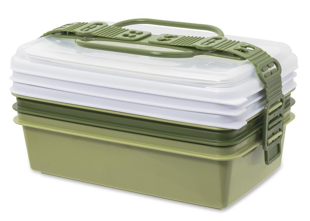 Sanko Plastic Контейнер для бенто с 3 сторонами Earth Ш x Г x 22 см В Коробка/Тарелки для пикника, Зеленый, 116772, Прибл.. 26.5см 15.5см
