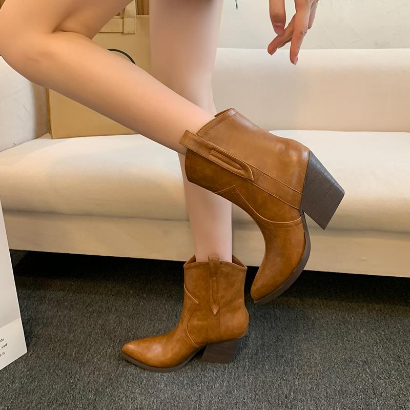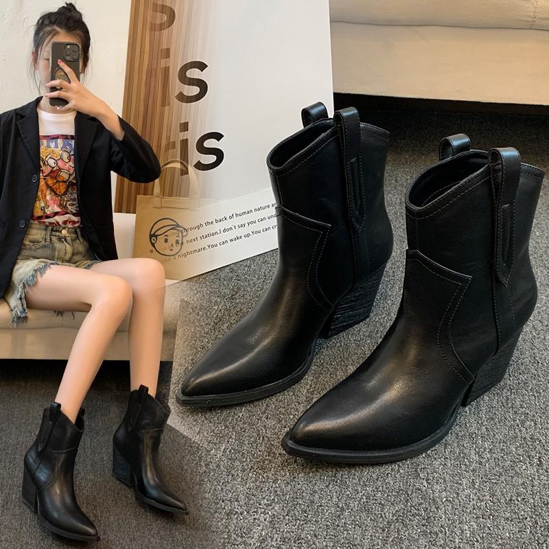 Новые брендовые дизайнерские женские ковбойские сапоги в стиле вестерн, модные элегантные туфли с острым носком на квадратном каблуке, осенне-зимние женские короткие сапоги