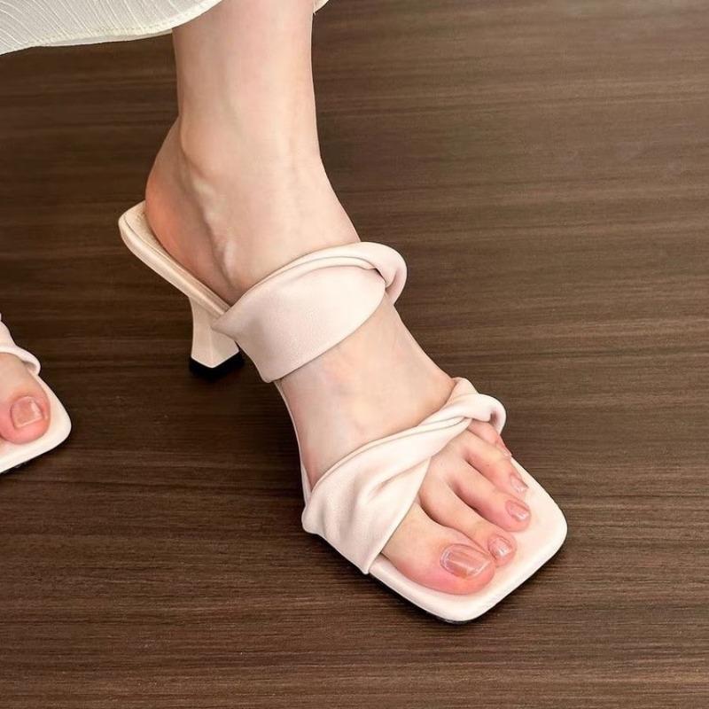 Новые стильные женские туфли на высоком каблуке, летние туфли с открытым носком и мягкой подошвой, модные туфли без застежек с квадратным носком, для свадебной вечеринки, нарядные туфли Zapatos Mujer