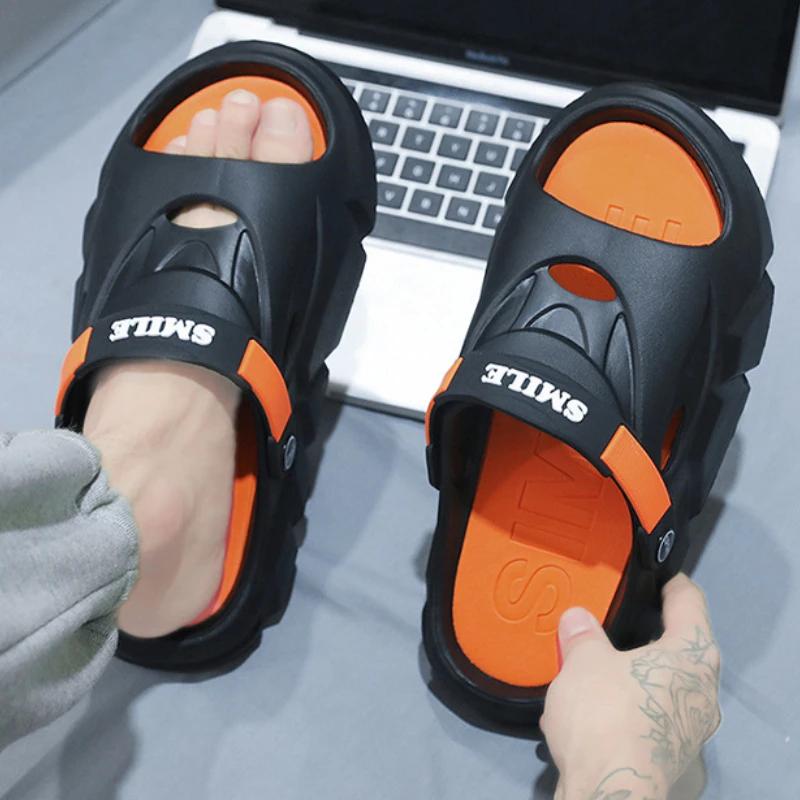 Мужские тапочки, летние шлепанцы на платформе с мягкой подошвой из ЭВА, домашние и уличные прогулочные пляжные туфли, шлепанцы, мужская обувь