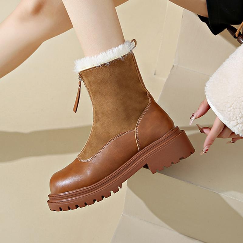 Зимние короткие плюшевые женские зимние сапоги Модные короткие кожаные плюшевые женские зимние сапоги Челси на платформе Повседневные женские ботильоны
