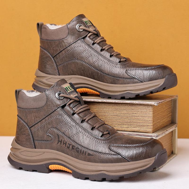 Высокие хлопковые кожаные туфли для мужчин с бархатной теплой толстой подошвой, повседневные теплые хлопковые туфли для зимы, нескользящие ботинки для мужчин