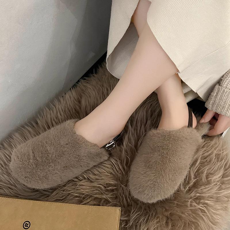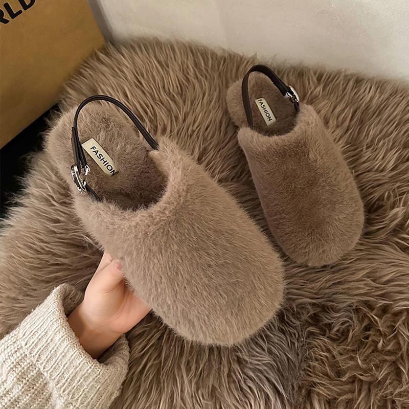 Зимние теплые женские туфли на плоской подошве с мехом, теплые домашние тапочки, теплая мягкая подошва, нескользящая обувь, плюшевые тапочки для дома