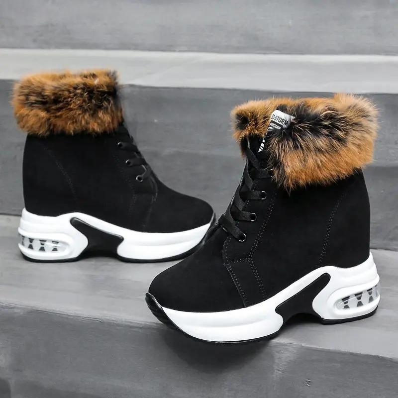 Женские ботильоны, теплая плюшевая зимняя обувь для женщин, ботинки на танкетке, женские ботинки на высоком каблуке, женские кожаные зимние ботинки, зимняя обувь