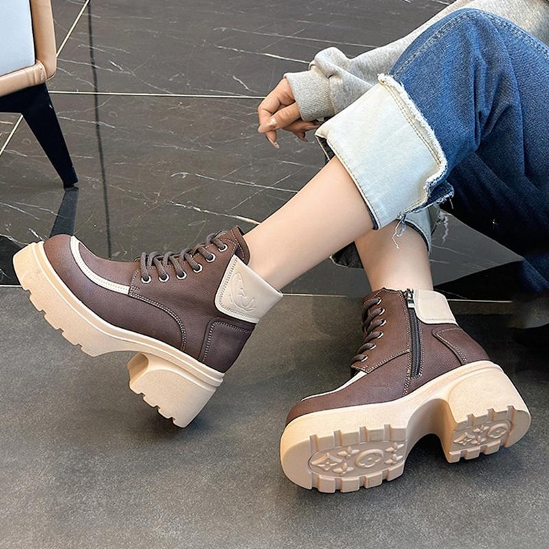 Короткие ботинки из натуральной кожи в стиле ретро, женские модные туфли на плоской подошве, удобная платформа 6 см, толстый танкетный каблук, универсальные туфли для отдыха на шнуровке — купить товар онлайн с бесплатной доставкой по всему миру!
