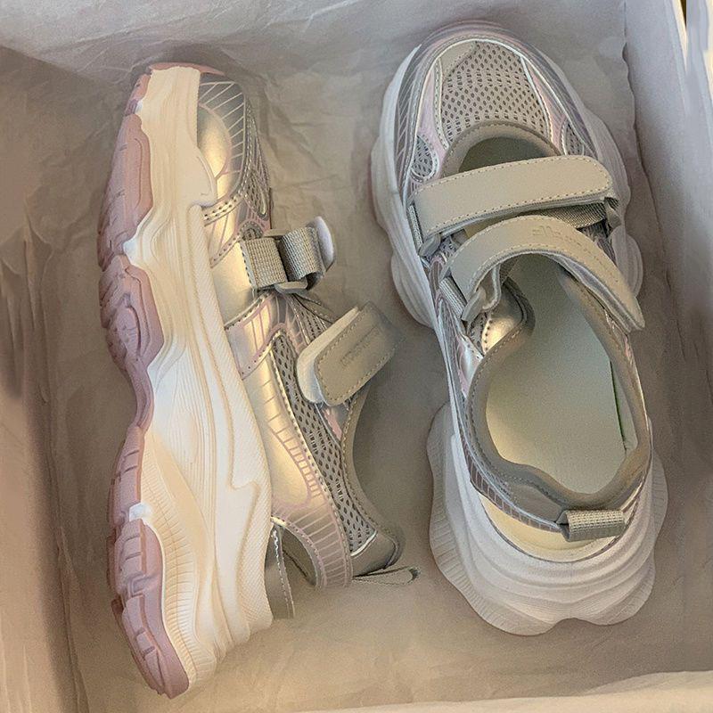Летние новые кроссовки на платформе из толстой дышащей сетки для женщин, повседневные спортивные сандалии, универсальные туфли Daddy, полые дышащие туфли