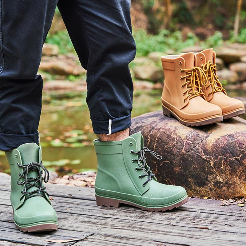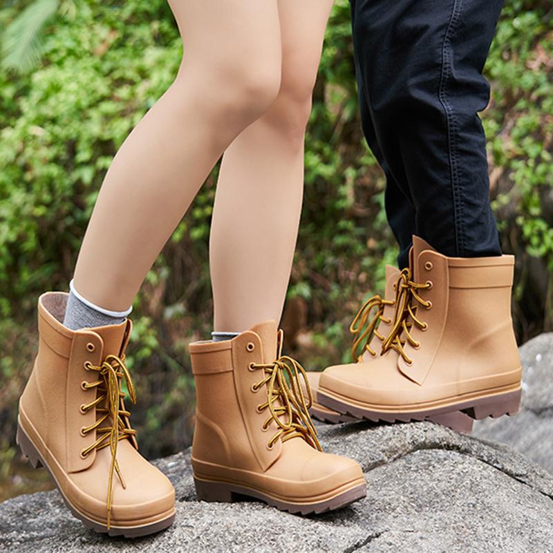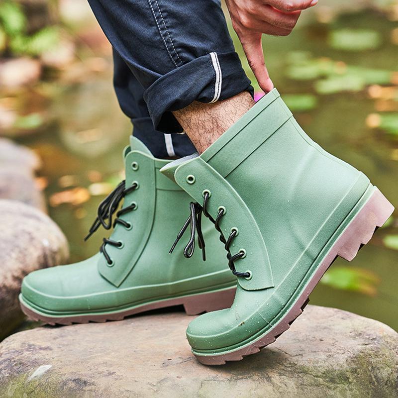 Новые резиновые ботинки для защиты труда больших размеров, мужские и женские модные резиновые сапоги на шнуровке, водонепроницаемые резиновые сапоги для отдыха на природе