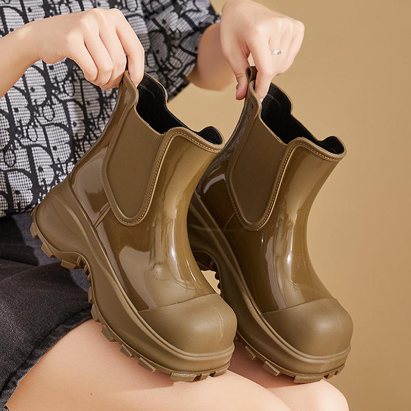 Водонепроницаемые женские дождевые ботинки для отдыха на открытом воздухе, средняя труба, толстые подошвы, водонепроницаемые ботинки, женские дождевые ботинки, прочные дождевые ботинки 36-41