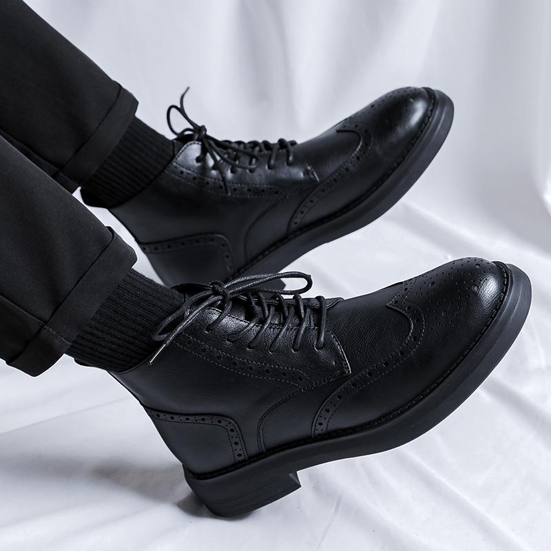Мужские ботинки-броги Модный ретро Универсальный стиль Для отдыха на природе Для бизнеса и повседневного офиса Качественные ботинки для взрослых Черные брови