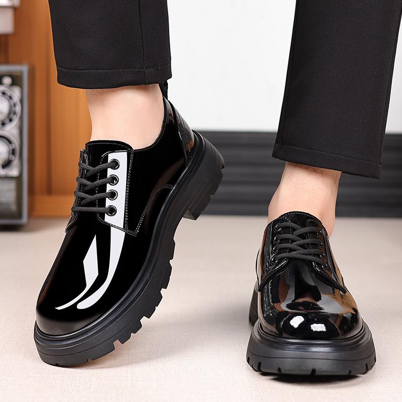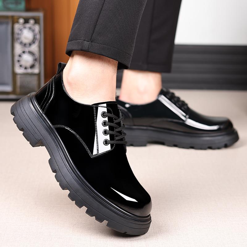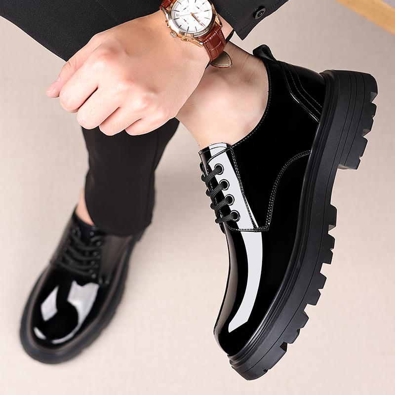 Модные мужские кожаные туфли в британском стиле, классические черные, с толстой подошвой, универсальные, для свадеб, вечеринок, офиса, на высоком каблуке