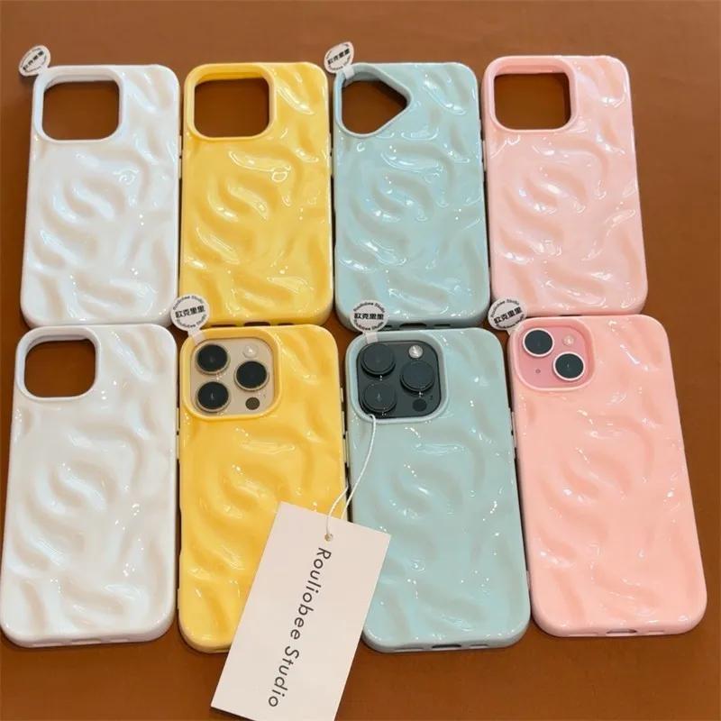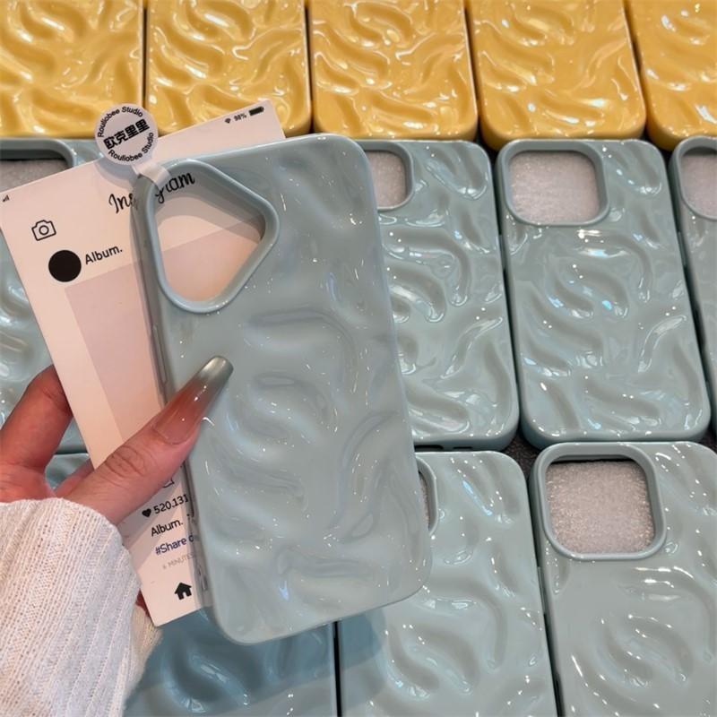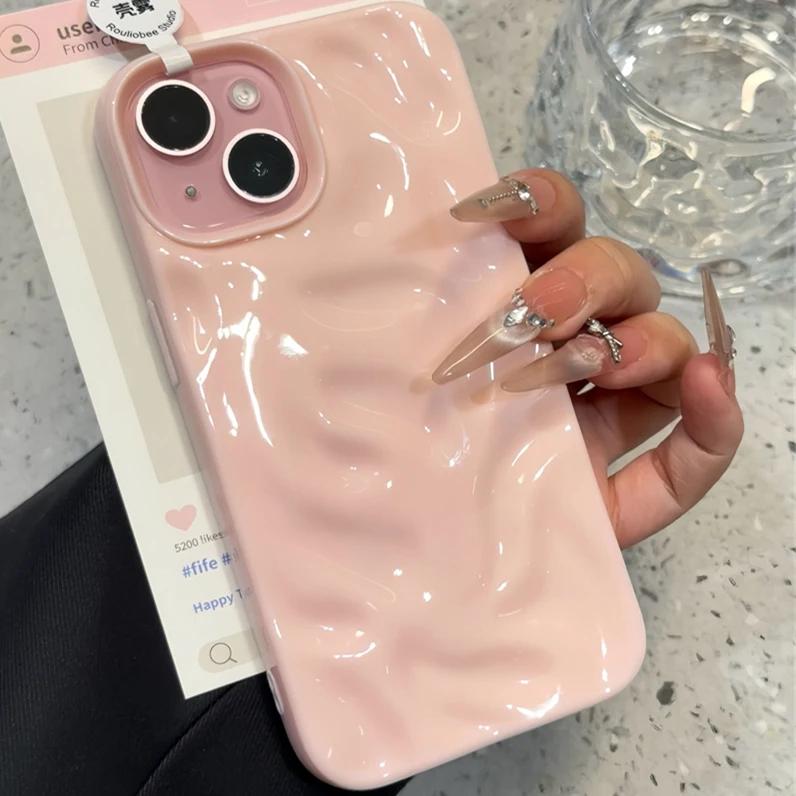 Роскошный 3D чехол с текстурой морщин для iPhone 16 15 14 Plus Pro Max 12 11 13, однотонный, с волнистым узором, из мягкого силикона, эстетичная накладка