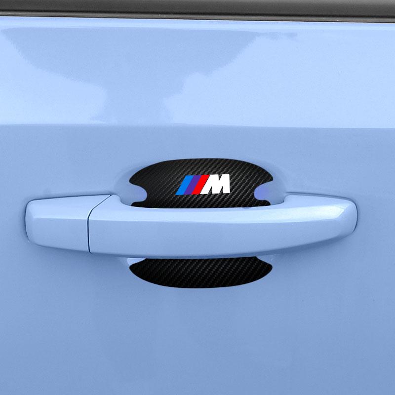 Наклейки для защиты дверных ручек с логотипом BMW M из углеродного волокна - 4 штуки