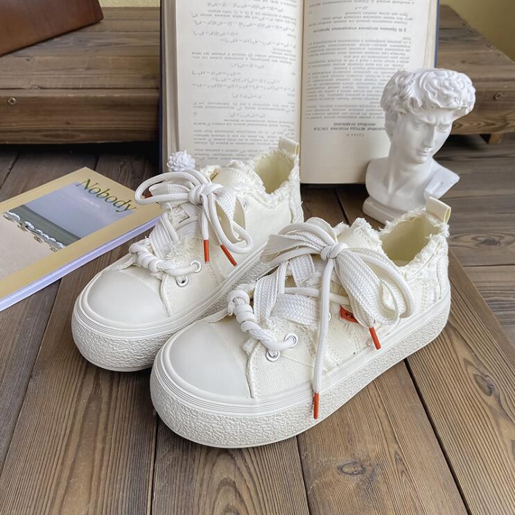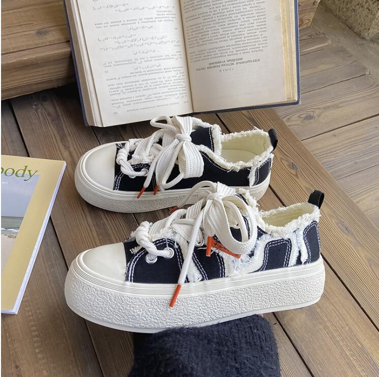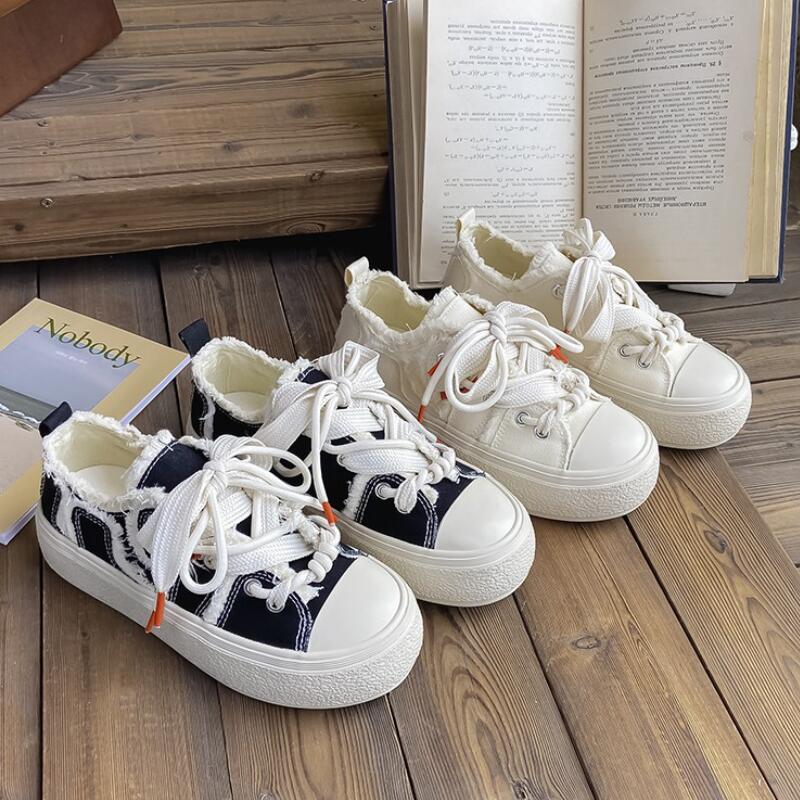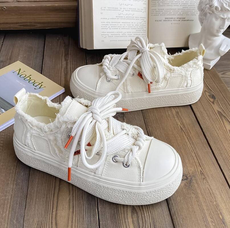 2024 парусиновые туфли женские кроссовки на платформе весна осень шнуровка балетки женские вулканизированные туфли кроссовки женские спортивные повседневные
