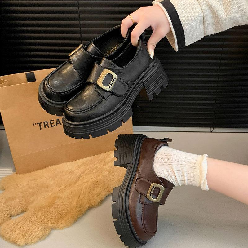 Британские туфли-лоферы женские весна-осень 2025 года новые толстые каблуки на платформе ретро модные маленькие туфли Мэри Джейн из кожи