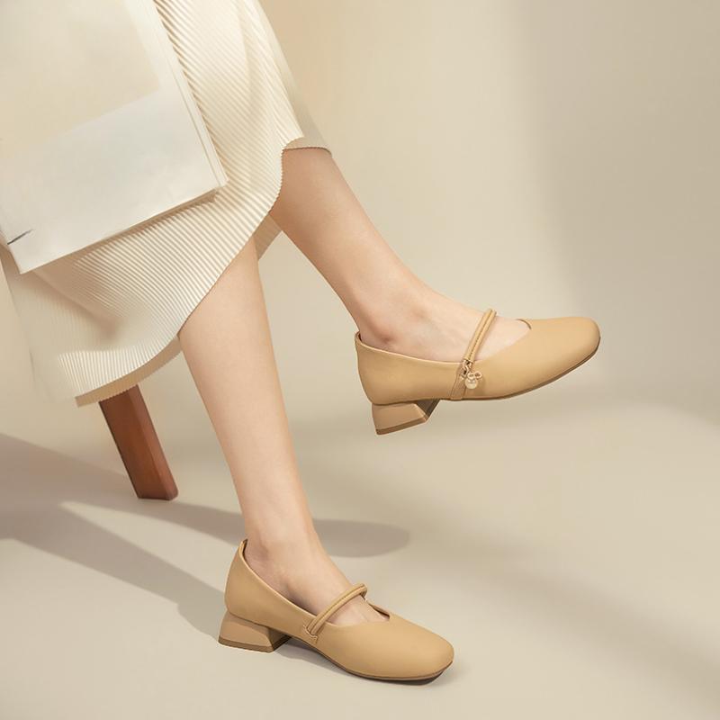 Корейская версия квадратного носка одинарные туфли с неглубоким носком 2024 года, новая мода, повседневная, простая, универсальная женская обувь Мэри Джейн, осенняя пора