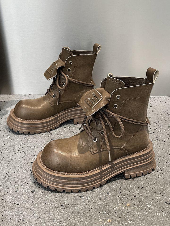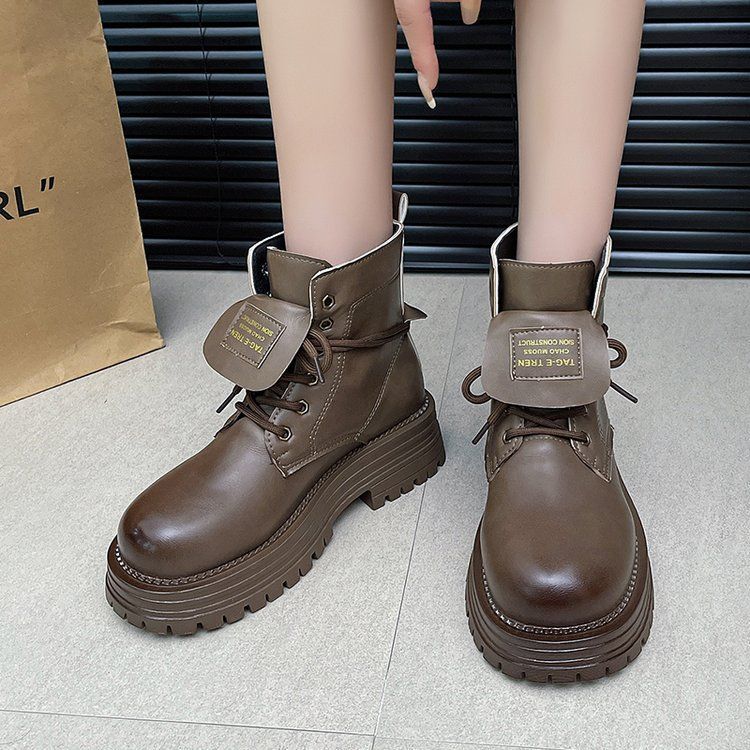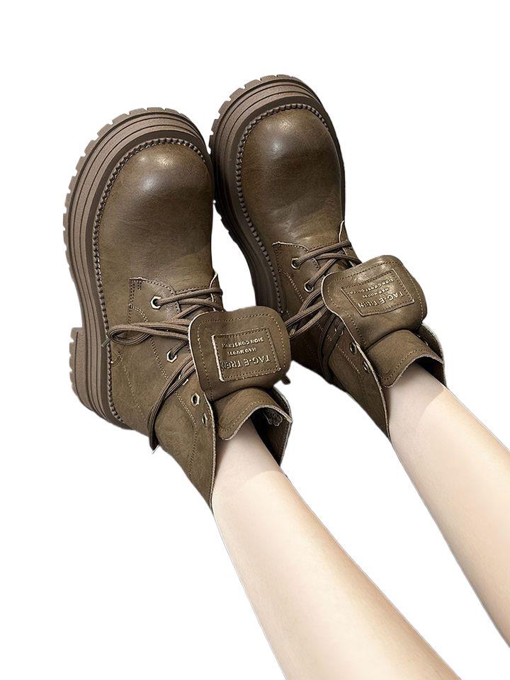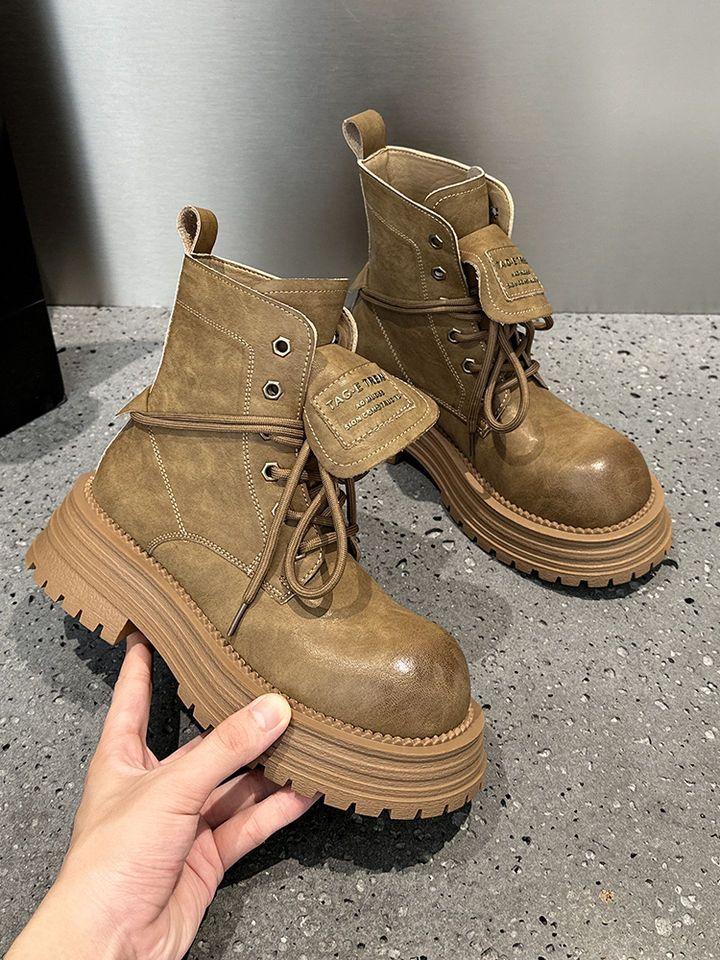 Женские ботильоны на водонепроницаемой платформе со шнуровкой на толстом каблуке, короткие ботинки, модные кожаные мотоциклетные ботинки в стиле панк 2025