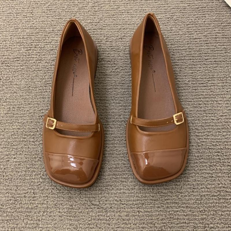 2024 Новые модные французские ретро туфли Мэри Джейн с квадратным носком, маленькие кожаные туфли для поездок на работу, универсальные женские туфли на низком каблуке