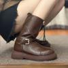 Зимние ботинки для женщин 2024 года, новые, с пряжкой на ремне, с круглой головкой, с толстой подошвой, для активного отдыха, модные женские ботинки
