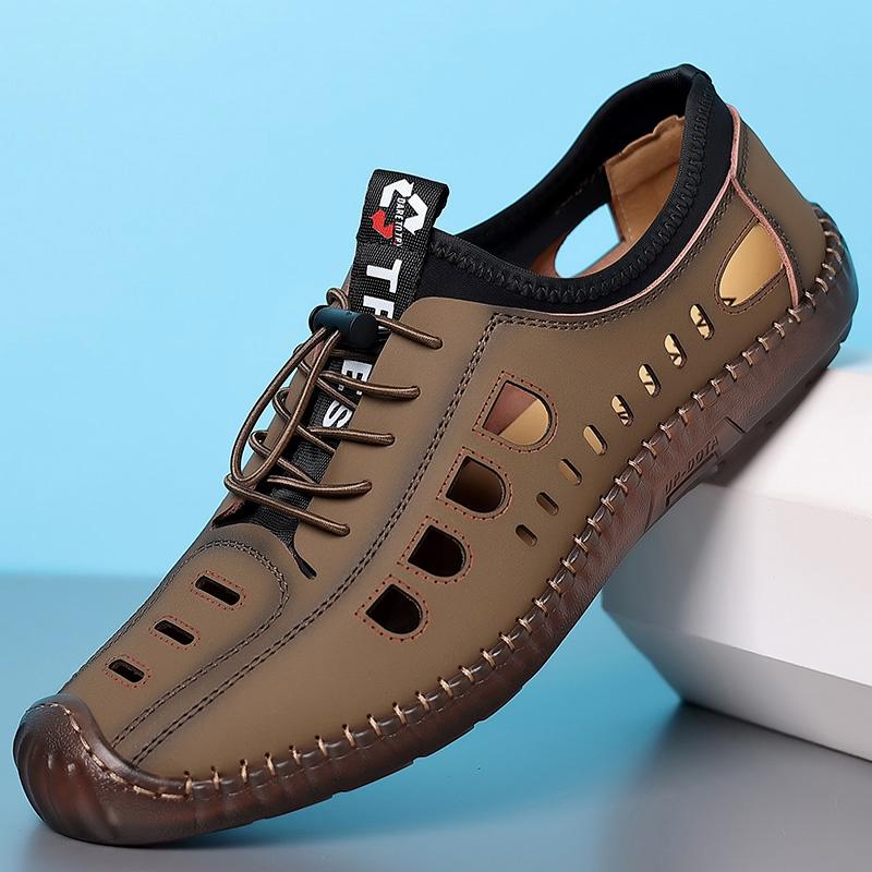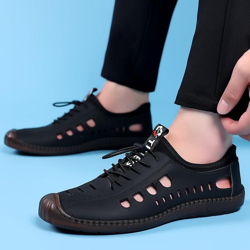Полые кожаные туфли мужские дышащие уличные туфли модные мужские роскошные сандалии мужские удобные прогулочные туфли мужские мокасины